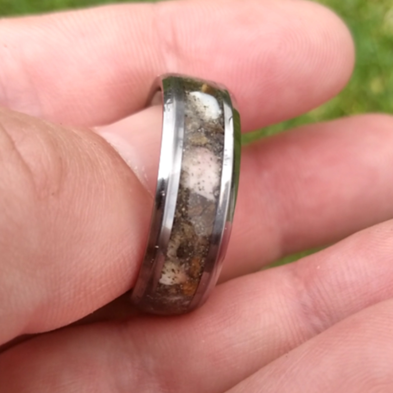 Tungsten Steel core ring with your special beach sand. Do you have a special beach? Would you like to keep those special memories on your finger? Please collect 1 cup of sand from your beach and send it to NZ Native Wood Rings. We will care and treat your sand to go into a ring that you can have made for yourself, a friend, or a loved one.